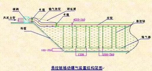 薄膜管式微孔曝氣器是一種應用于水中供氧系統的新型充氧擴散裝置,他解決了現有曝氣器造價高,安裝維修不方便的問題。 本管式曝氣器與其連接的水面漂浮物和負重物的平衡作用力影響在水中處于懸浮狀態,每組曝氣管作為一個單元,可以單獨通過提升鏈條提出水面檢修。布氣管是一種以化纖增強改良塑料為材料的軟性管狀曝氣器,進氣軟管和布氣管內部的UPVC襯管連接,襯管和布氣管之間留有通氣間隙,氣體進入曝氣器的阻力明顯減少,可提高曝氣器的效率。